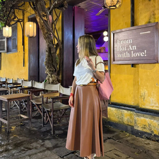 Chocolate Leather-effect Midi Skirt