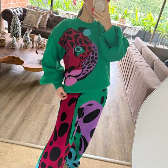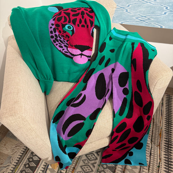 Green Leopard Print Pants