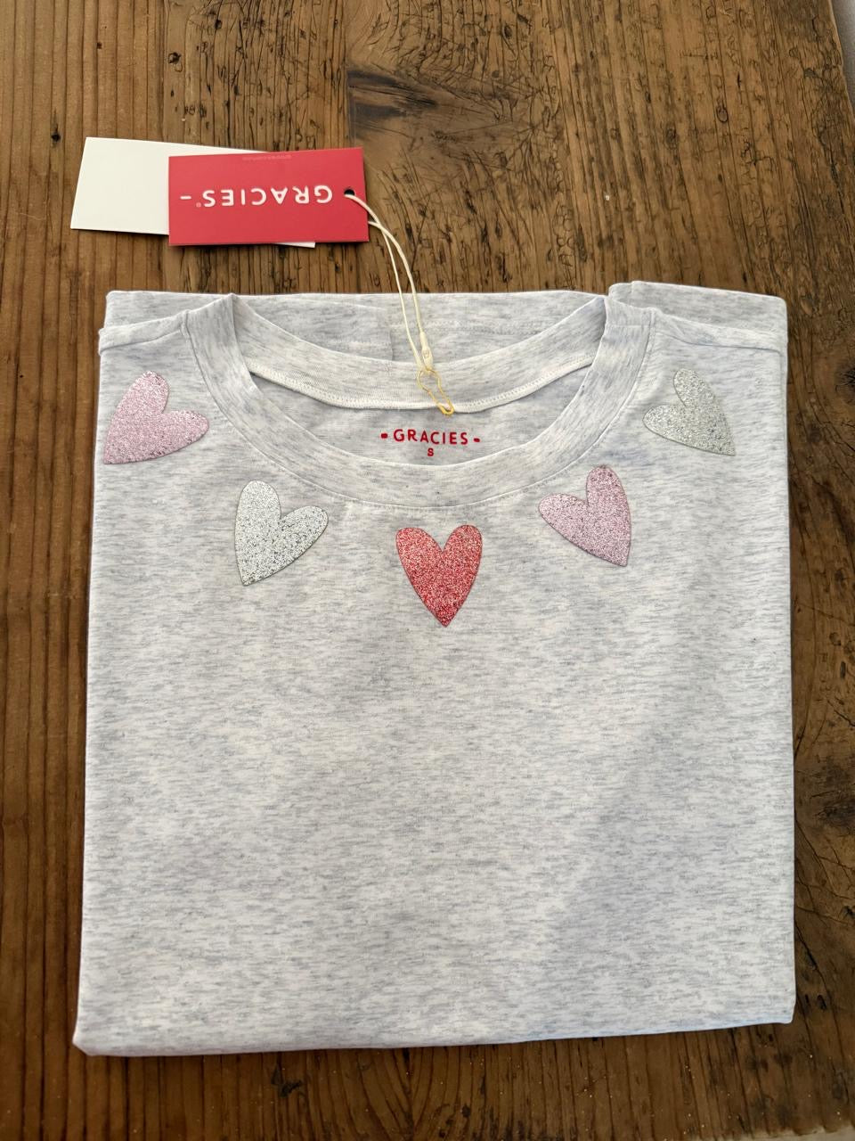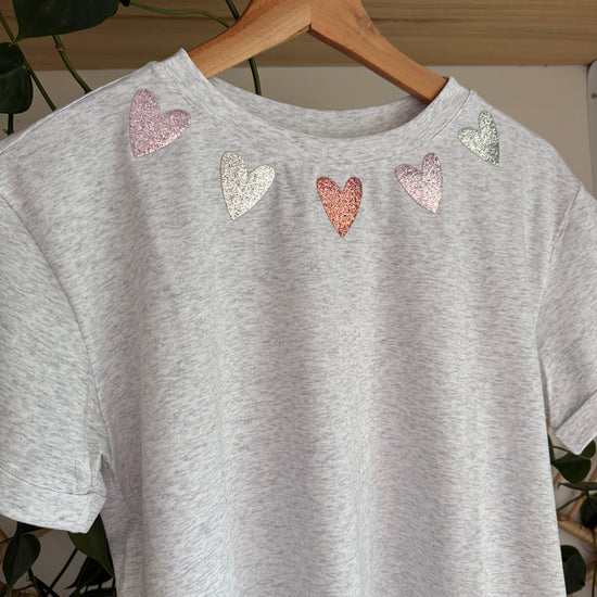 Grey T-shirt with Sparkling Hearts